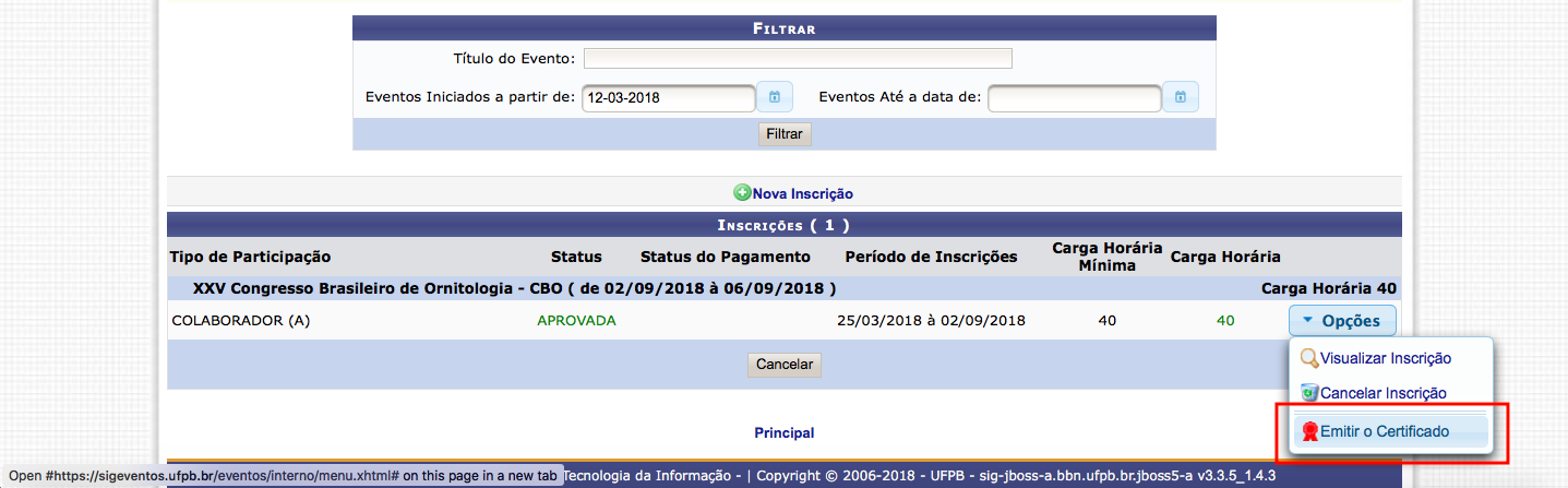 Como acessar seu cerificado de participação no XXV Congresso Brasileiro de Ornitologia 2018: